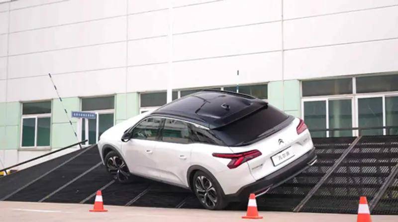 秋日山區自駕雖美,蜿蜒山路與陡峭斜坡卻對車輛穩定性提出嚴苛考驗。試驗場設置近30°傾斜坡模擬此類路況,四款車型憑借強悍車身結構與出色底盤調校從容應對。凡爾賽C5 X以80%以上高強鋼車身結構保障穩定;2026款天逸C5 AIRCROSS“太空艙”式車身采用最高1600MPa熱成型鋼,高強度鋼占比達65.06%,配合540°超廣角視野,安全感拉滿;2025款508L AMVAR可變獨立懸架在運動模式下增強側向支撐,70%以上高強鋼車身輕松抵御側傾;新408龘龘款依托“中國十佳車身”品質與CLDR大師級調校底盤,穩定性同樣出色。