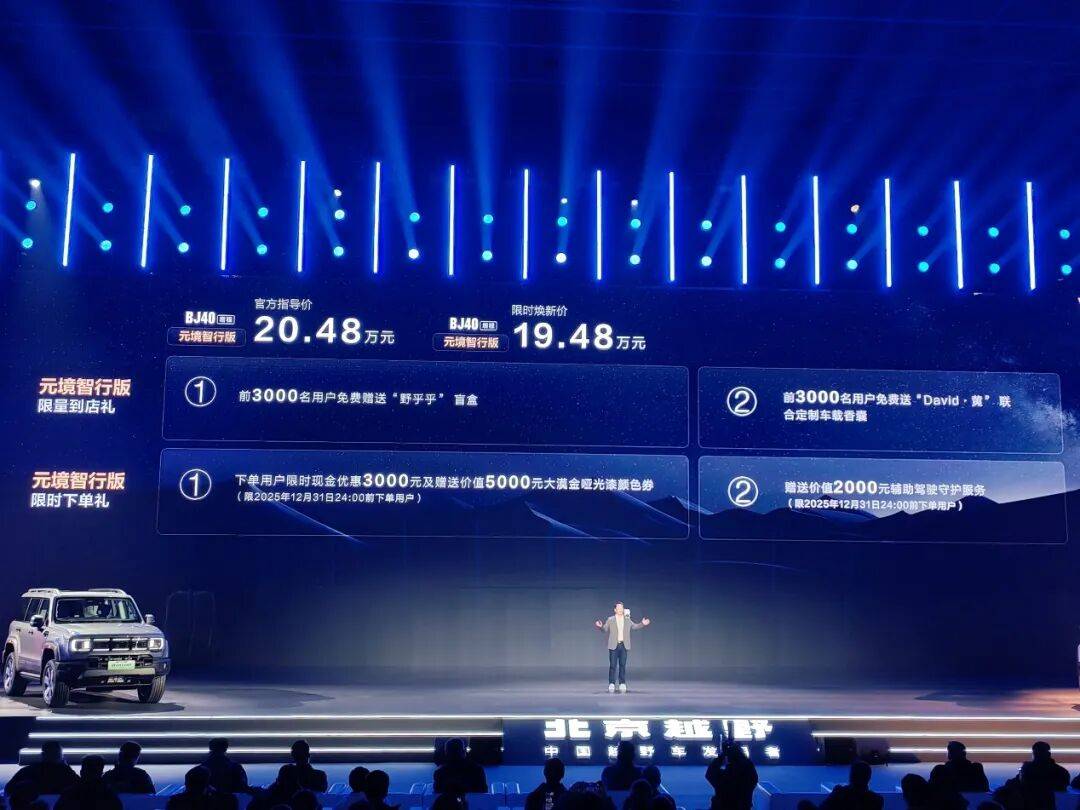11月13日,北京越野BJ40增程元境智行版正式上市,官方指導價20.48萬元,限時煥新價更是低至19.48萬元。這款新車在保留BJ40系列硬派基因的同時,在智能駕駛領域實現了重磅升級,成為20萬級價格區間內一位既能滿足日常通勤經濟性,又能在周末帶你去野外的“全能選手”。那么,這款能夠兼顧日常通勤與遠方越野的BJ40增程元境智行版,究竟為何能成為20萬級智能硬派SUV的新答案?