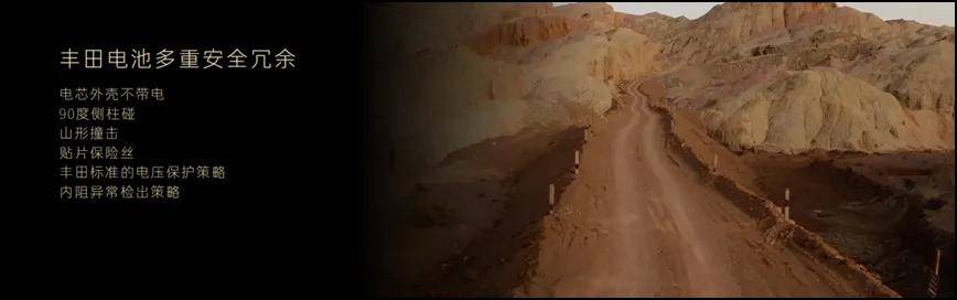 其中需要強調的是,鉑智7在車內車外門把手均配備雙重解鎖機制,將所有門把手機械+電動二合一,使門把手具備安全冗余設計,極端情況下斷電依舊可以利用機械方式打開。同時,豐田還首創超國標“山形碰撞測試”用于驗證電池底部碰撞安全。電芯四重防護、電池四層防熱擴散、電池上蓋特殊設計和廣豐反向駐場育成電池供應商,這些均是針對電池殼體和電芯安全的冗余設計與做法。