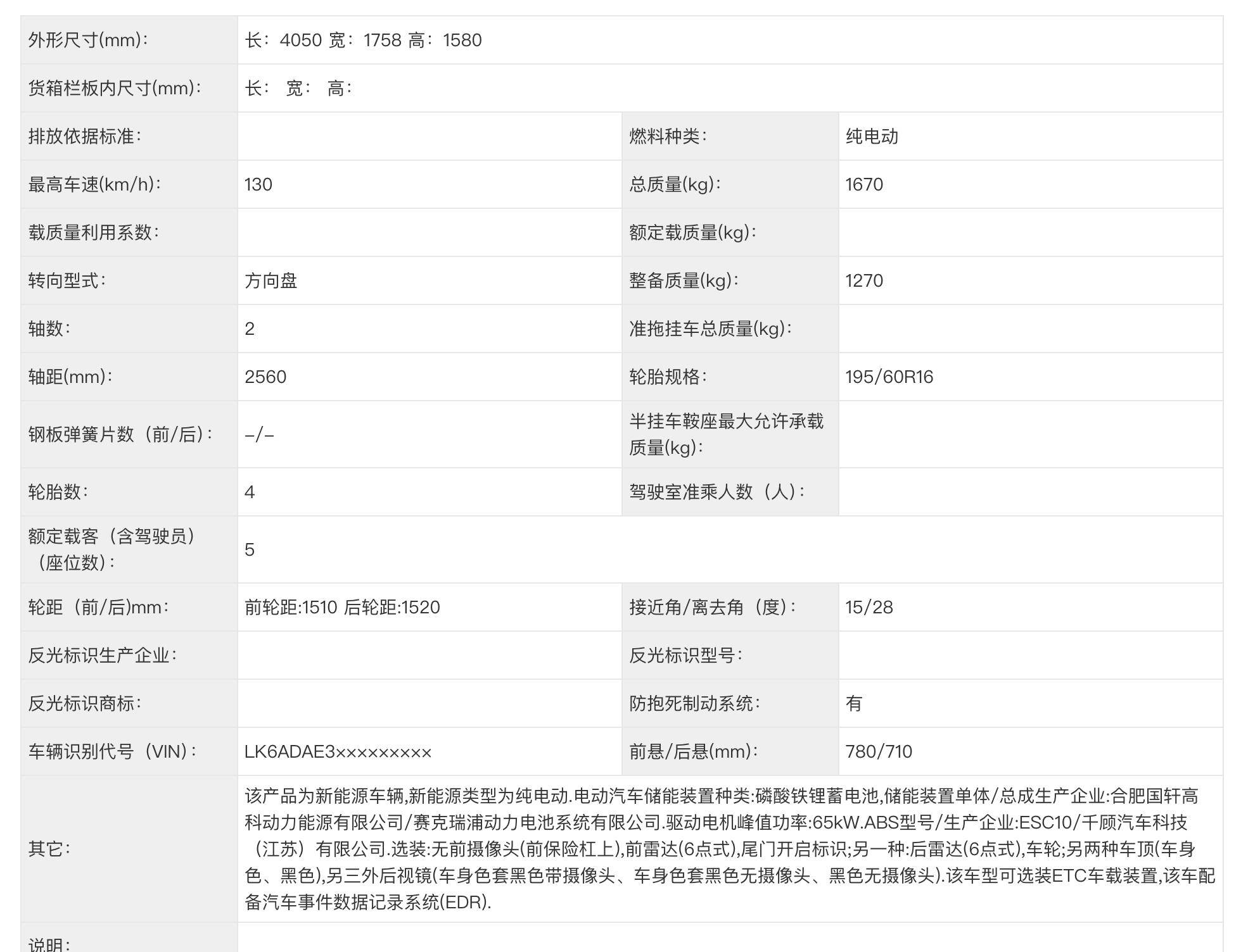 動力上,繽果Pro為純電車型,驅動電機峰值功率為65kW,最高時速設定在130km/h。電池采用國軒高科磷酸鐵鋰電池,電池容量和續航里程暫未公布具體信息。