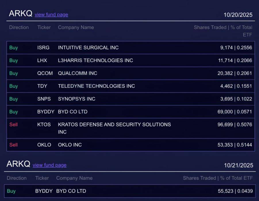 除國際投行外,以凱茜·伍德(女版巴菲特)旗下方舟投資為代表的長線資金,也在加速布局比亞迪。方舟投資在10月20日通過旗下ARKQ基金買入69000股比亞迪,10月21日再度增持55523股,這一連串的動(dòng)作,充分表明了該資本對(duì)比亞迪前景的看好。