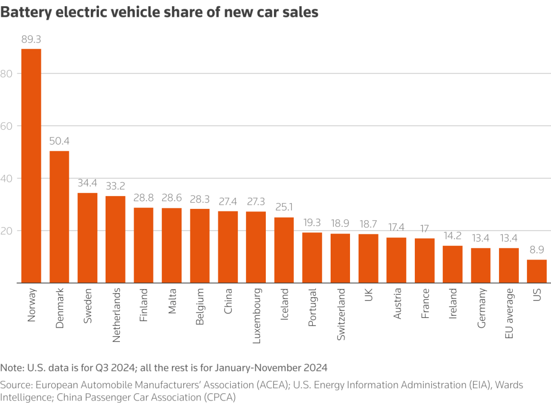 哪些國家的車主愛買電動車?這么冷的地區怎么這么多!
