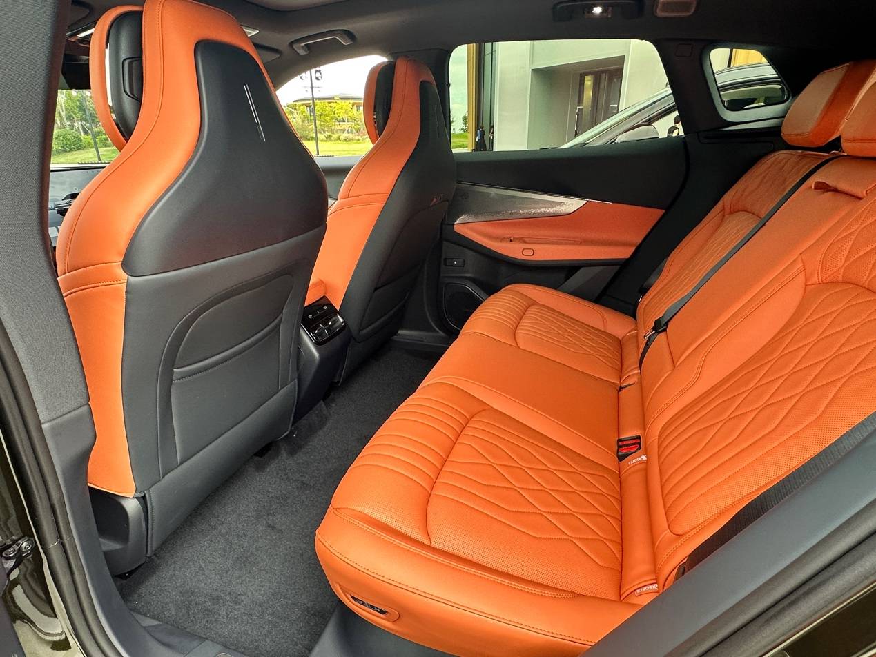 座椅采用抗污NAPPA真皮包裹,符合人體工程學,支撐性與舒適性俱佳,主駕座椅坐墊還進行了加長,為駕駛者提供了更好的腿部支撐。同時,主駕支持12向電動調節,副駕支持10向電動調節,前后排座椅均提供加熱、通風、按摩功能,后排座椅靠背還支持118°~129°無極電動調節,后排右側還提供折疊小桌板。