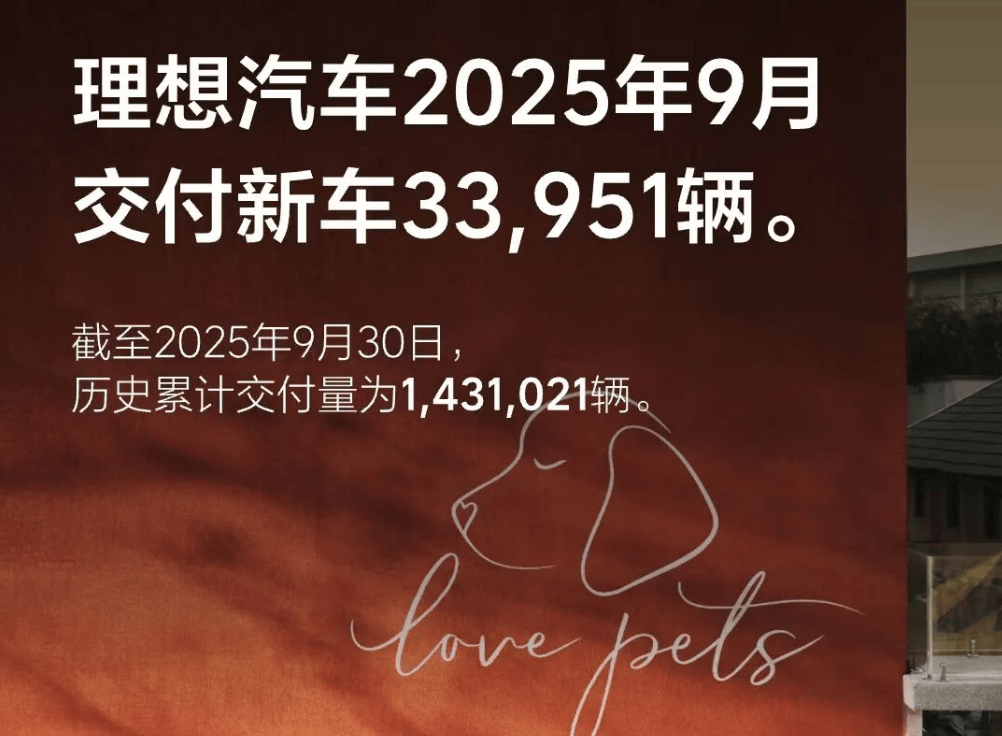 理想汽車9月銷量為33951輛,同比下滑了36.8%,如無意外的話,這應該也是理想的最低谷。