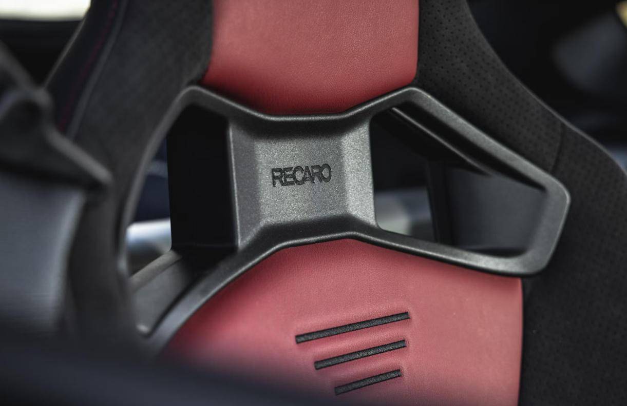 除了機械層面,Nismo版的外觀也重新設計,前保險杠的格柵開口更大,前角的小擾流器幫助引導氣流,減少車輪周圍的空氣擾動,匹配19英寸RAYS輪圈,車內多了兩張Recaro座椅,高速過彎減少身體晃動。