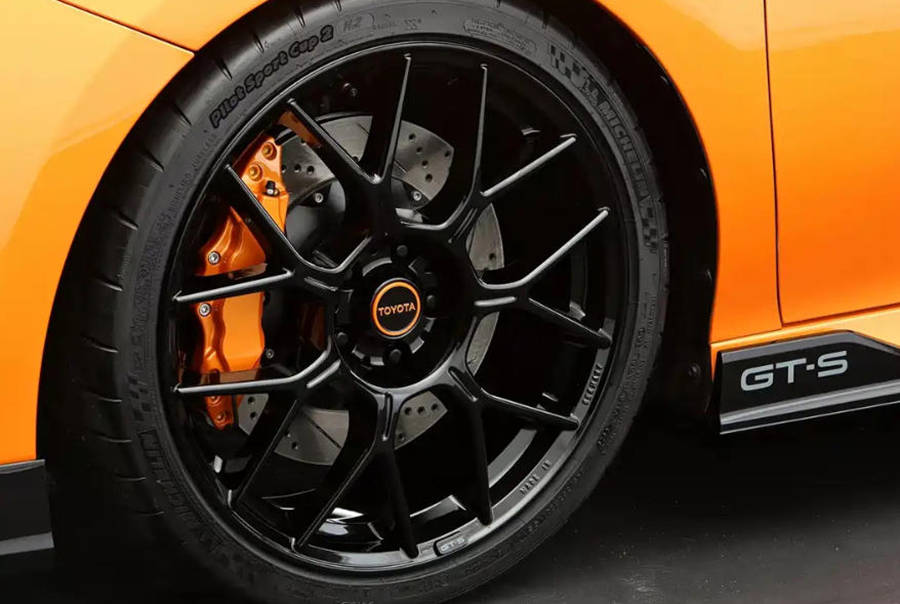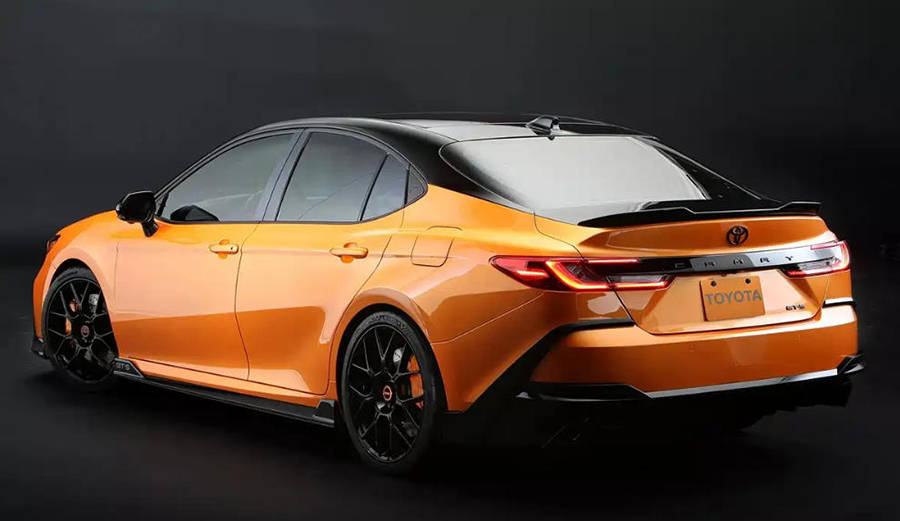 外觀方面,凱美瑞GT-S概念車采用定制車身套件,提供更犀利的前擾流板,發動機蓋中部采用黑色設計,主體車身采用"烈焰橙"車漆,與發動機蓋、車頂、輪圈以及車身細節上的黑色涂裝形成對比,整體視覺效果十分運動。新車將配備了一套全新的20英寸合金輪圈,并采用245/35 R20性能輪胎。車輛尾部提供黑色小鴨尾擾流板,下方兩側帶有通風口,并搭配激進的擴散器設計。