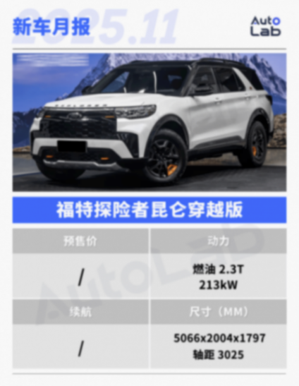 福特探險者昆侖穿越版是探險者新增的車型版本,采用了大五座的布局。